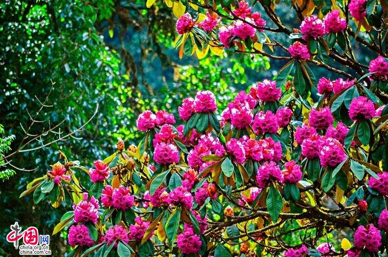 大树杜鹃是云南高黎贡山特有珍稀树种,是国家一级重点保护野生植物,仅分布在高黎贡山海拔2100-2700米的常绿阔叶林中。(杨明艳 摄)