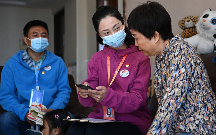 10月17日,国奥社区,普查员入户工作。新京报记者 陶冉 摄