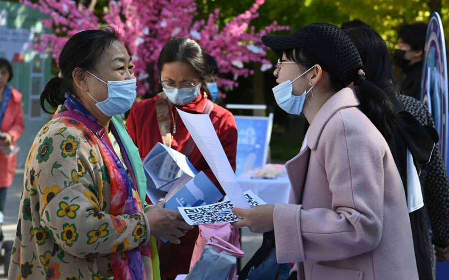 10月17日,国奥社区居委会,北京市人普办联合朝阳区人普办走进奥运村街道国奥村社区组织居民进行第7次人口普查的介绍。新京报记者 陶冉 摄