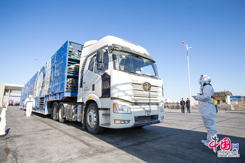 中国网11月13日讯 13日上午,内蒙古出入境边防检查总站二连出入境边防检查站为载运最后一批1800只蒙古国捐赠羊的2辆货车办理完通关手续,标志着历时23天、共14批次的蒙古国3万只捐赠羊全部入境。