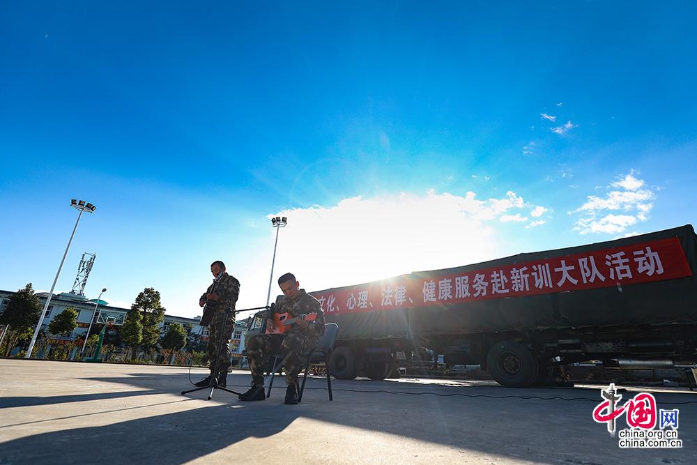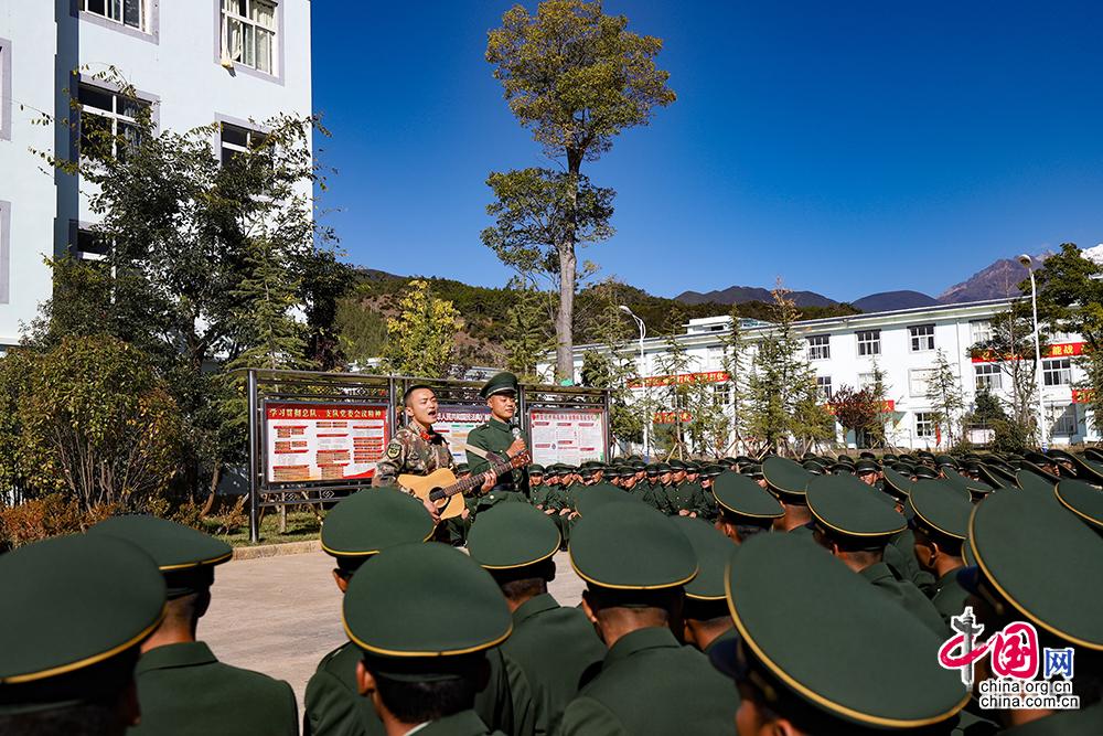 中国网讯(赵明军 杨航 任梦) 兵演兵,演绎军旅梦想;兵唱兵,抒发壮志情怀;兵说兵,展现军人苦乐。近日,武警云南总队文化、心理、法律、健康服务小分队来到云南丽江玉龙雪山下,把歌舞送上雪域高原,为这里的新战士们进行慰问演出,在寒冷的冬天给新战友们带来了阵阵温暖。