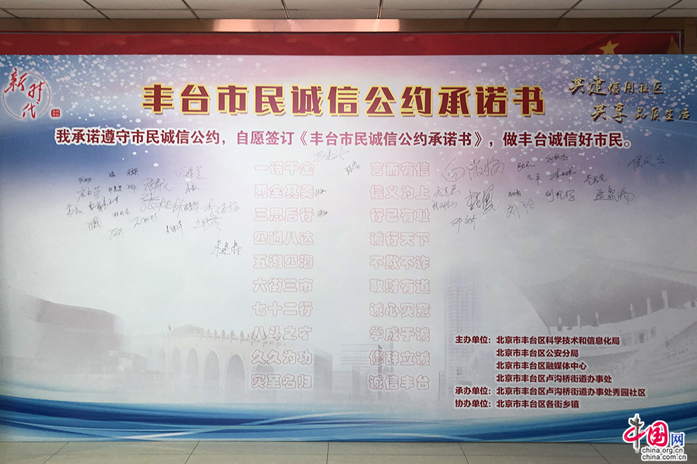 社区居民签署《丰台市民诚信公约承诺书》 丰台区科信局 供图
