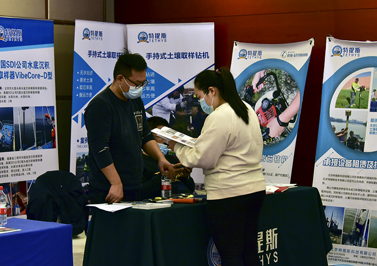会场摆放了地质勘探设备展板,以便让参加会议的研究生们了解行业内的先进仪器设备情况。