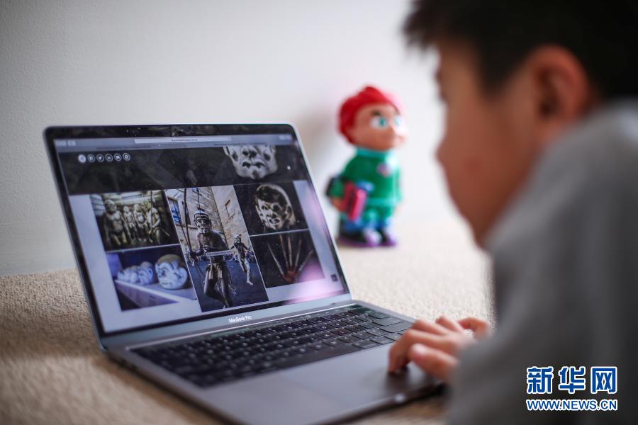 5月18日,在澳大利亚悉尼,一名停课在家的小学生浏览一家博物馆的在线展览。因新冠疫情而关闭的众多澳大利亚博物馆在各自网站上线了多种“云展览”。新华社记者 白雪飞 摄