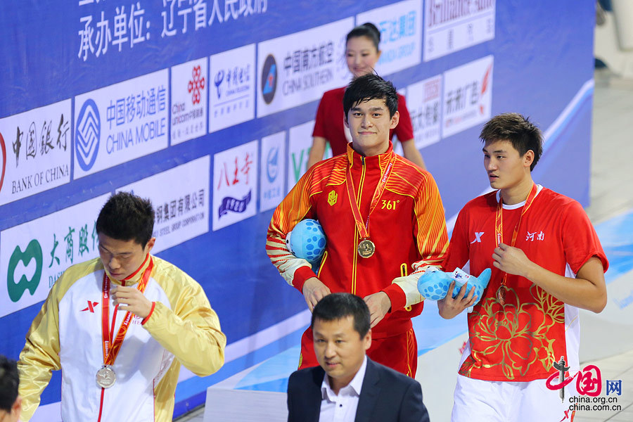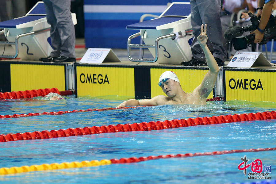 资料图为:第十二届全运会男子400米自由泳决赛中,浙江选手孙杨以3分43秒68的成绩获得冠军。中国网记者 董宁摄影