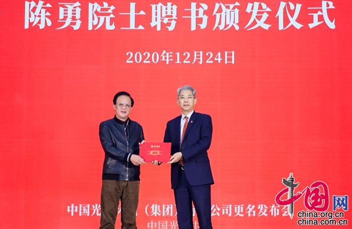 李晓鹏为中国工程院院士陈勇颁发聘书。