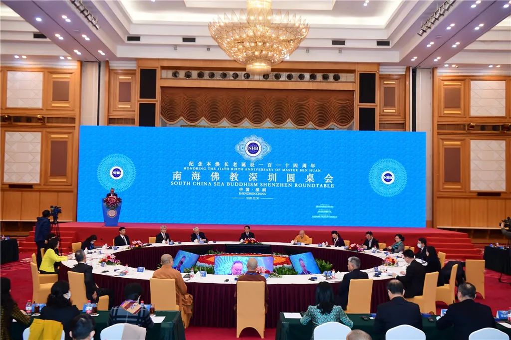 2020南海佛教深圳圆桌会12月30日在中国深圳开幕,来自中国、英国、缅甸、菲律宾、蒙古、柬埔寨、尼泊尔、斯里兰卡、泰国、马来西亚等国家和地区及港澳台的佛教界领袖、政商学界人士,通过线上线下方式参会,除深圳主会场外,还同步设置北京视频分会场。深圳市委常委、统战部部长杜玲致欢迎词,应邀出席圆桌会的第十二届全国政协副主席齐续春在开幕式讲话。