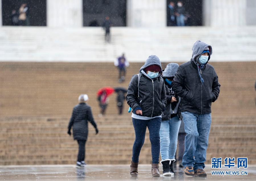 1月1日,在美国华盛顿,人们戴着口罩游览林肯纪念堂。