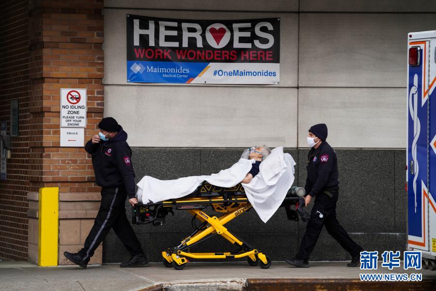 1月1日,在美国纽约,医护人员运送一名患者。
