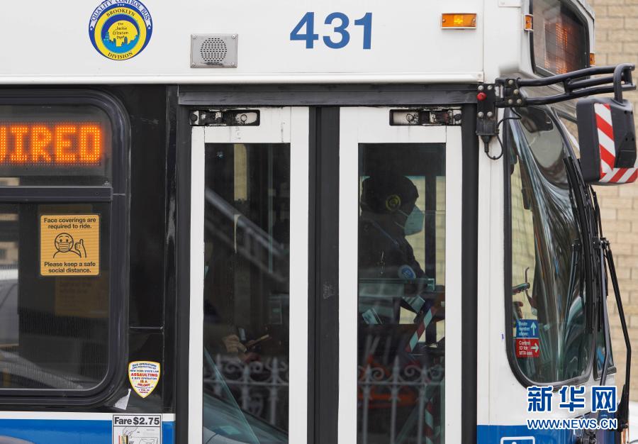 1月1日,在美国纽约,一名公交司机戴着口罩工作。