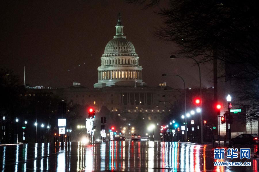 1月1日,位于美国华盛顿的国会大厦笼罩在雨中。新华社记者 刘杰 摄