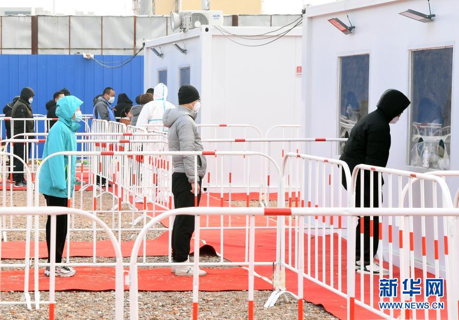 2021年1月2日,在北京市顺义区旺泉街道一处临时核酸检测采样点,被检测人员等待核酸采样。
