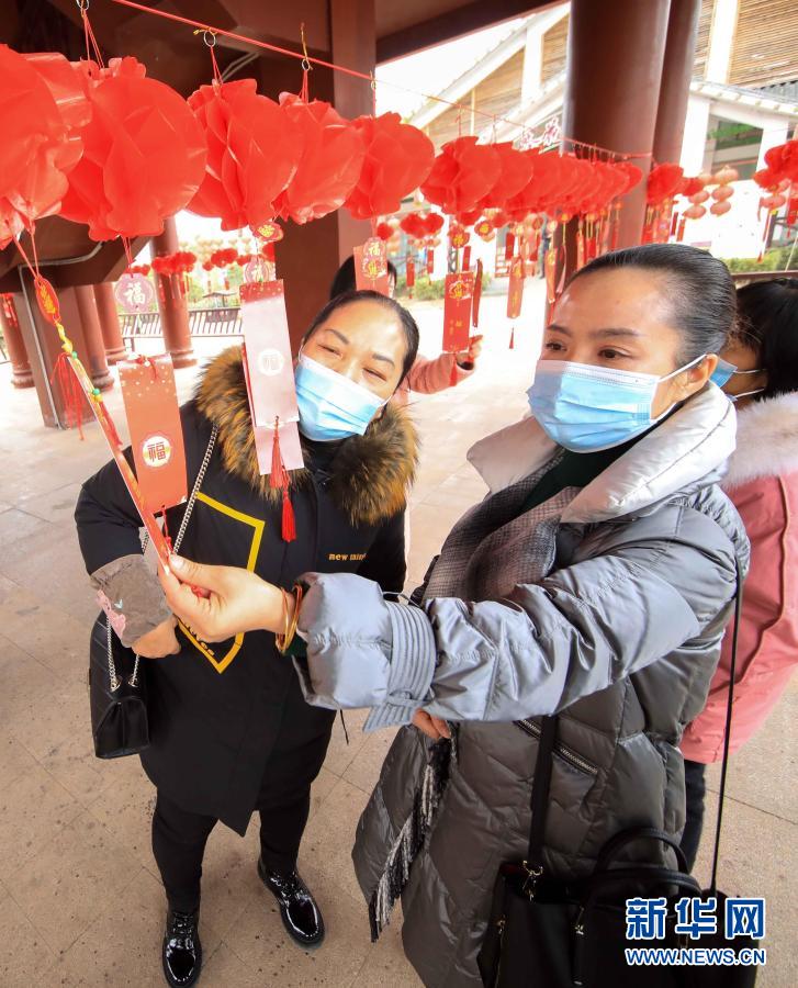 1月2日,游客在贵州省铜仁市玉屏侗族自治县茶花泉景区猜字谜。