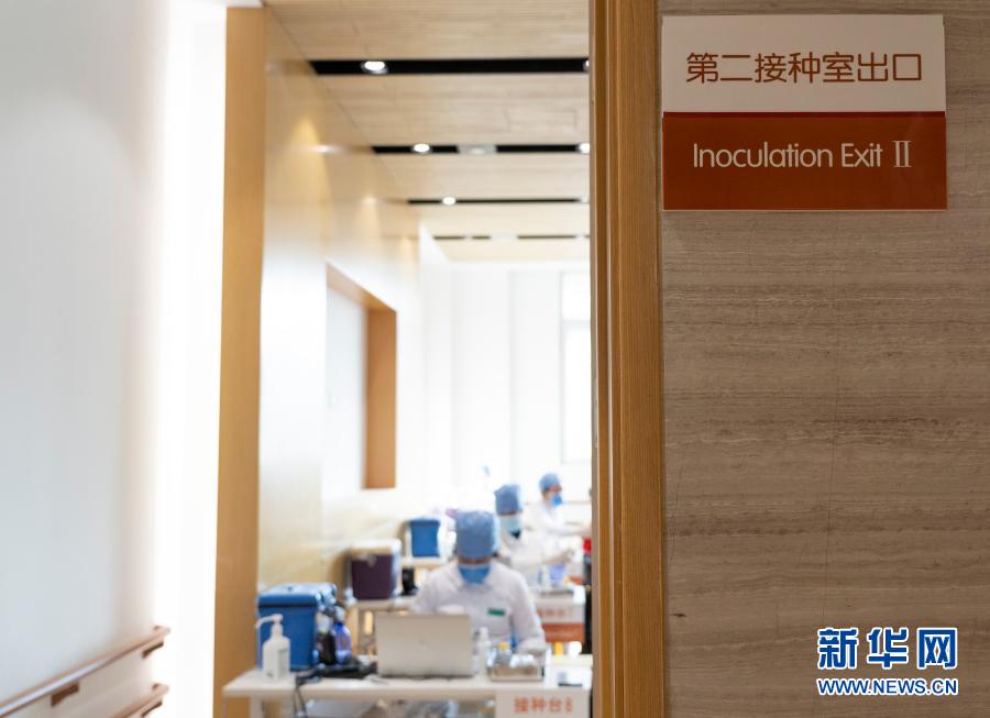 2021年1月3日,在位于北京市西城区广安门外街道红莲社区卫生服务站的接种点,医护人员等待为接种人员注射疫苗。