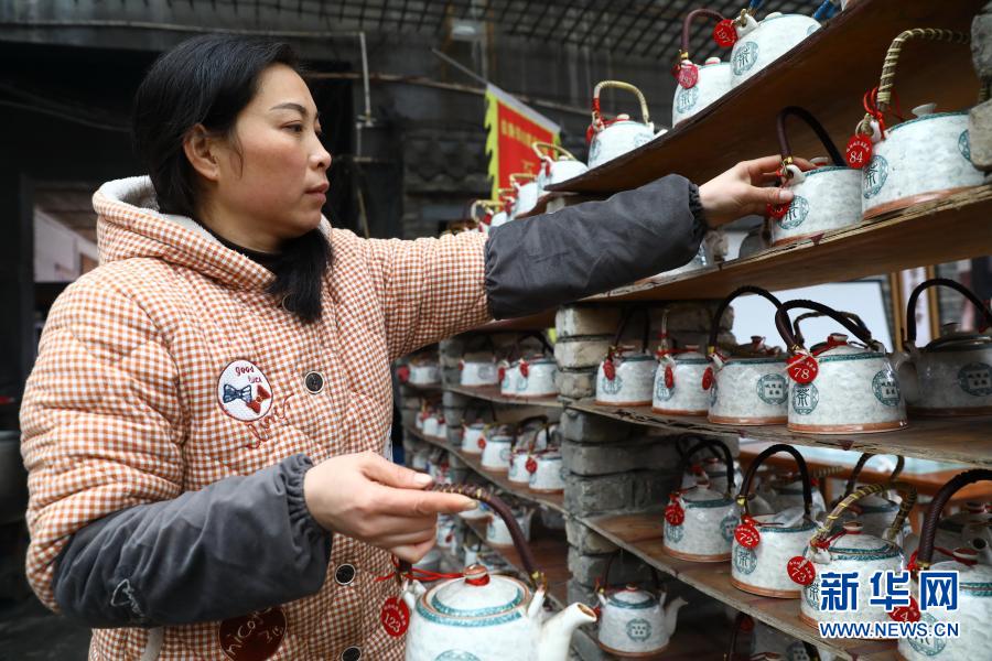 2021年1月3日,安徽省濉溪县临涣镇一茶馆的工作人员在摆放茶具。