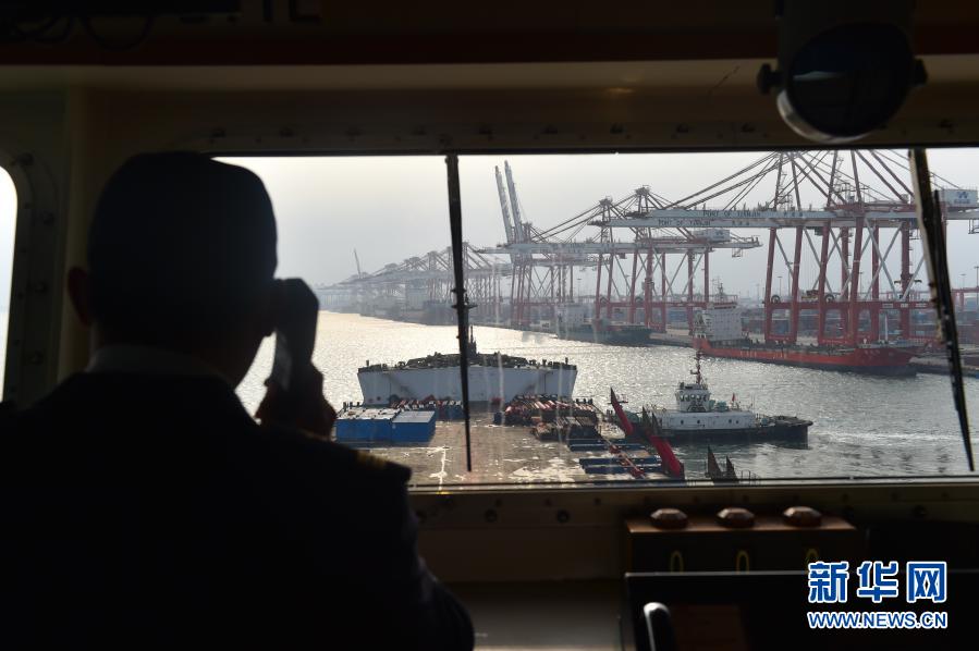 2020年12月28日,天津港引航中心引航员李业在引航一艘船舶离港时联系海事局交管中心申请航道。