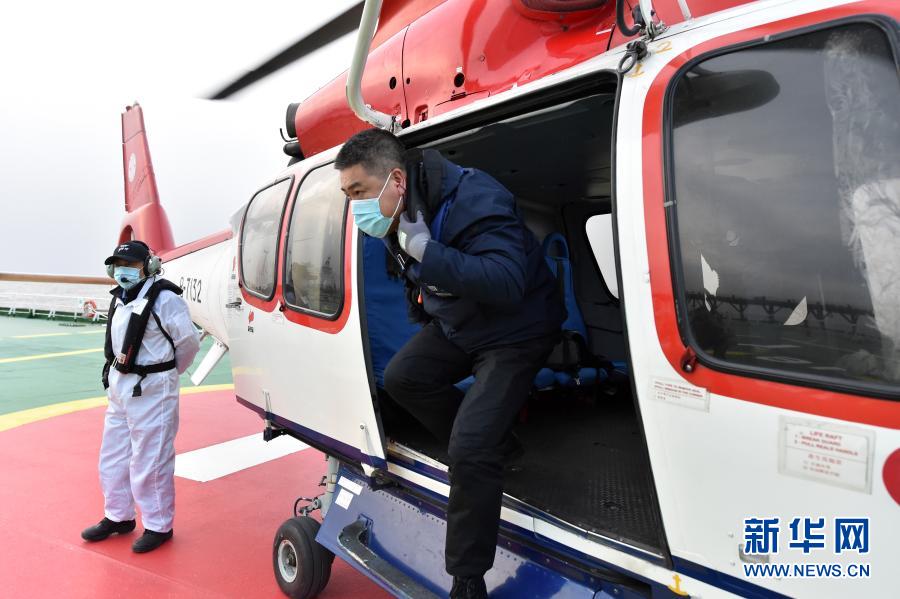 2020年12月29日,天津港引航中心引航员刘宝良走下直升机登上货轮,他将引航该船舶进港。