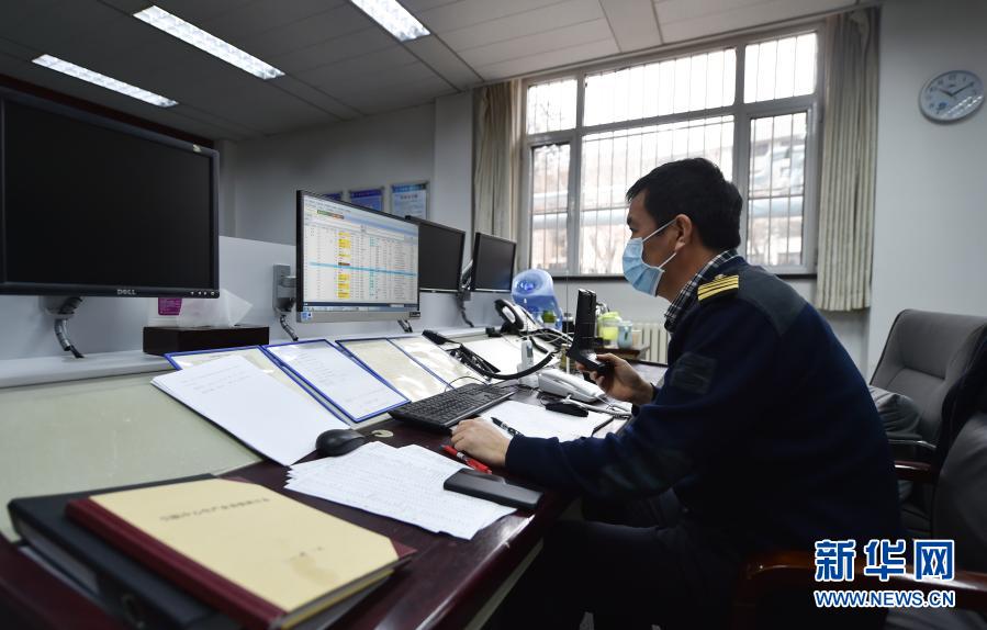 2020年12月28日,天津港引航中心工作人员在值班室查看船只班次动态。