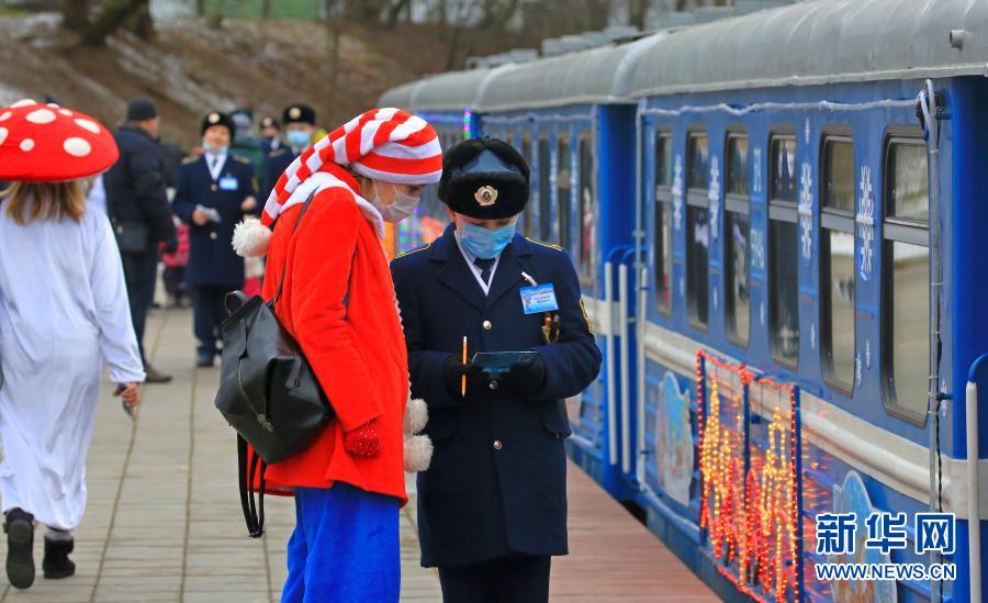当日,位于明斯克的儿童铁路专门开行新年专列,营造新年气氛。该儿童铁路全长4.5公里,共设有三站,车站站长、列车员和司机等各工种均由少年儿童担任。