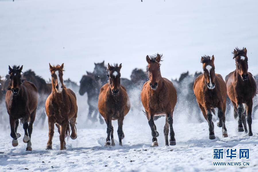 这是在新疆伊犁哈萨克自治州昭苏县天马旅游文化园拍摄的驰骋的骏马(2020年12月26日摄)。