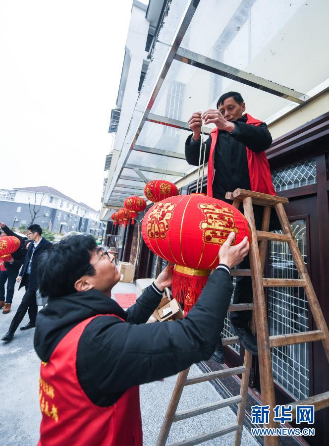 1月5日,在浙江省湖州市吴兴区东林镇星华村已建成的新农村新居,村干部和党员志愿者带着红灯笼和福字对联开展“迁新居 迎新年”活动,给搬入新村的村民们挂红灯笼、贴福字,同时了解他们的所需所急,送服务上门,努力让村民们搬得满意、住得舒心。据悉,从2020年下半年开始,东林镇星华村共有70多户村民陆续搬迁至新居。
