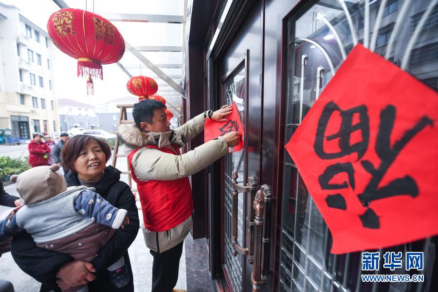 1月5日,在浙江省湖州市吴兴区东林镇星华村已建成的新农村新居,村干部和党员志愿者带着红灯笼和福字对联开展“迁新居 迎新年”活动,给搬入新村的村民们挂红灯笼、贴福字,同时了解他们的所需所急,送服务上门,努力让村民们搬得满意、住得舒心。据悉,从2020年下半年开始,东林镇星华村共有70多户村民陆续搬迁至新居。
