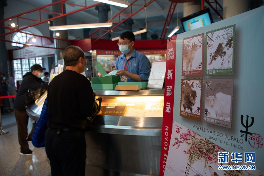 1月5日,在新马路澳门邮政总局,市民选购牛年生肖邮票。