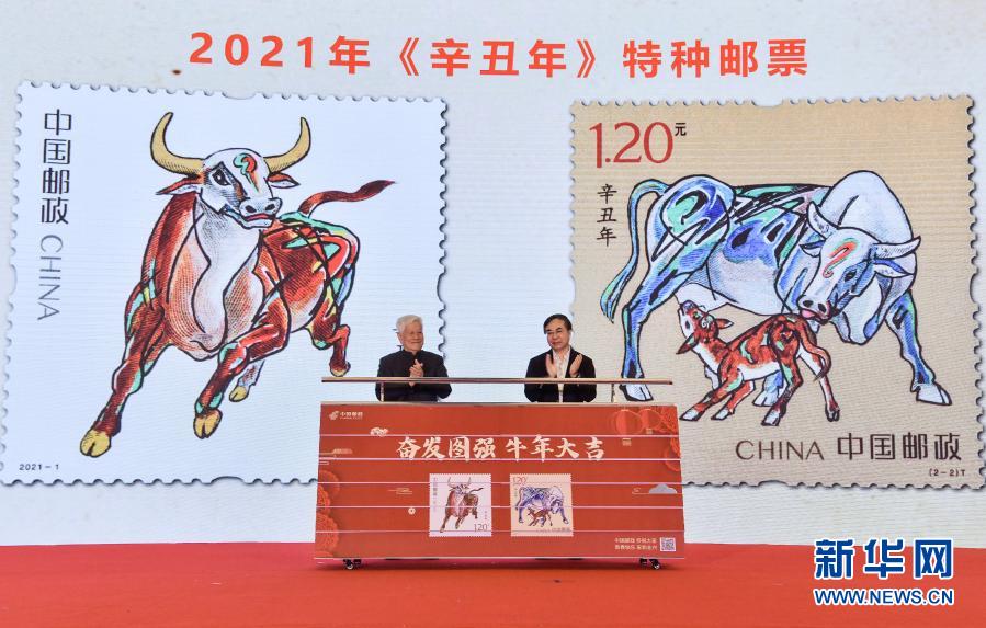 当日,中国邮政发行《辛丑年》特种邮票1套2枚,图案分别为“奋发图强”“牛年大吉”。