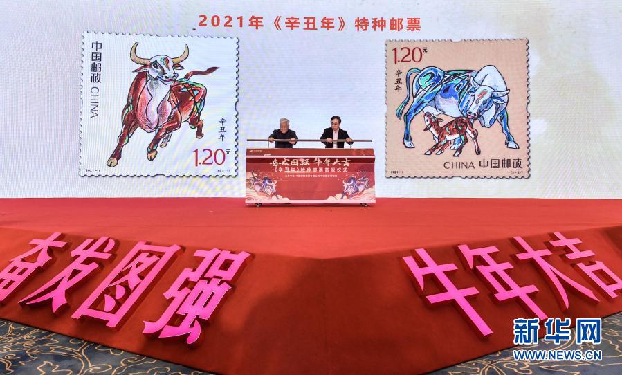当日,中国邮政发行《辛丑年》特种邮票1套2枚,图案分别为“奋发图强”“牛年大吉”。