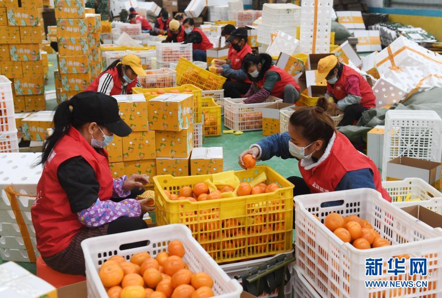 1月5日,在广西南宁市武鸣区城厢镇一处沃柑产业园,工作人员在分拣沃柑准备包装外销。