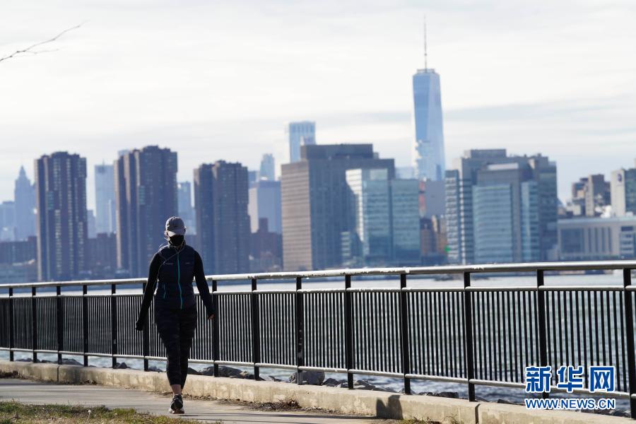 1月9日,在美国纽约,一名女子在东河河畔散步。