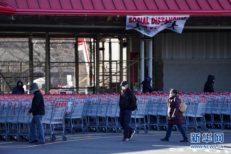 1月9日,在美国纽约,顾客准备进入一家超市。新华社记者王迎 摄