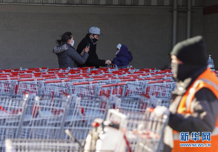 1月9日,在美国纽约,顾客准备进入一家超市。新华社记者王迎 摄
