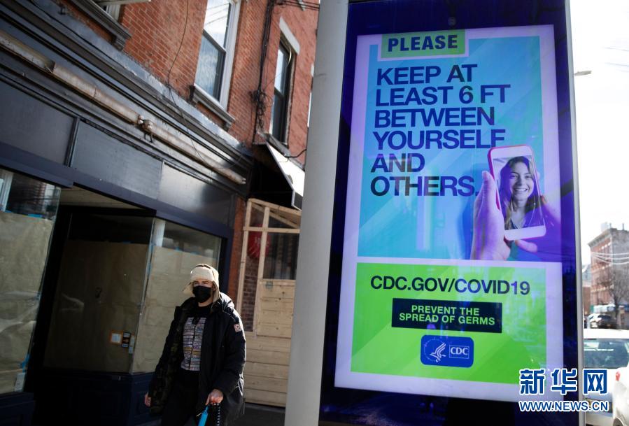 这是1月9日在美国纽约街头拍摄的提醒人们保持距离的告示。新华社记者王迎 摄