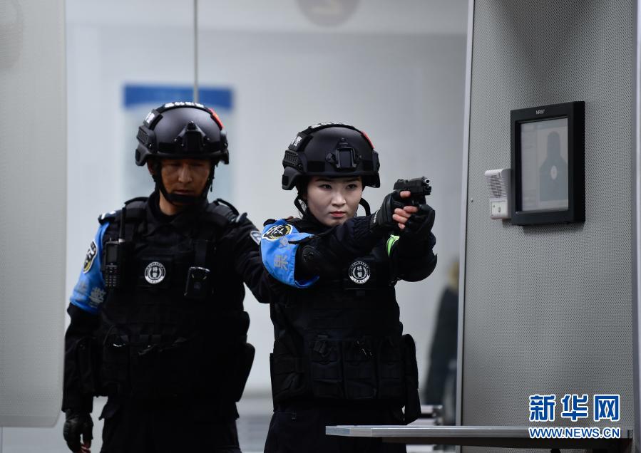 1月9日,青海省果洛藏族自治州公安局特警支队直属女子中队的队员在参加射击训练。新华社记者 张龙 摄