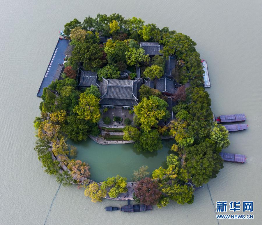 空中俯瞰嘉兴南湖湖心岛(无人机照片,2020年10月27日摄)。