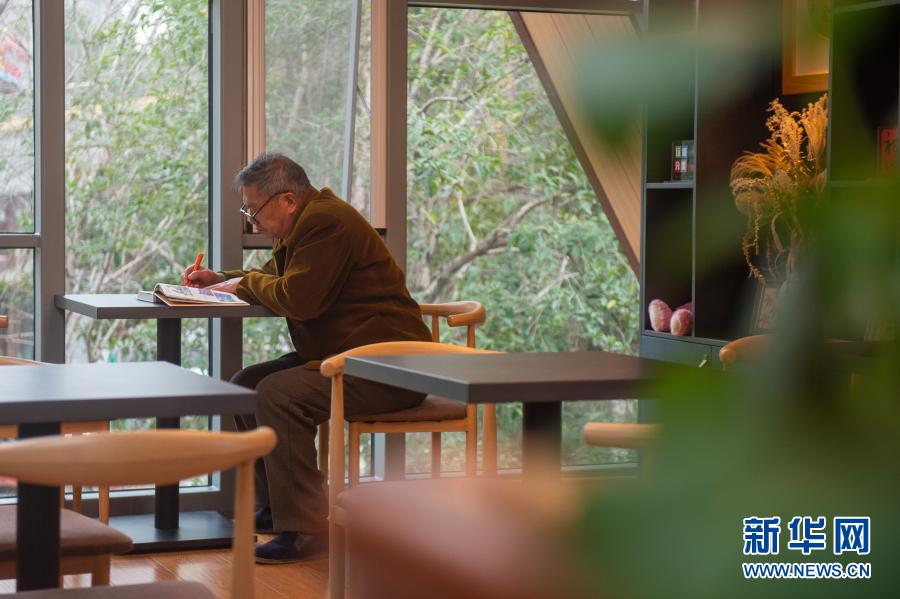 1月5日,在嘉兴市南湖区洪兴路一处城市驿站内,一名老人在阅读书籍。