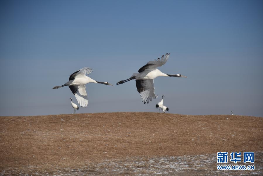 寒冬中,黑龙江扎龙国家级自然保护区的丹顶鹤在蔚蓝的天空中展翅飞翔,在洁白的雪地上翩翩起舞,引来许多游人驻足观赏。黑龙江扎龙国家级自然保护区是我国规模最大的丹顶鹤人工繁育野化基地,截至目前,人工繁育和半散养丹顶鹤种群已达500只。