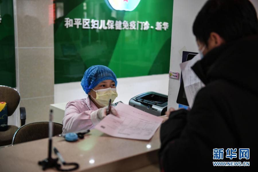 1月13日,在沈阳市和平区新华社区妇儿保健免疫门诊,医护人员为接种人员登记。