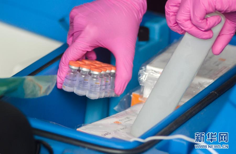 1月13日,工作人员在印度尼西亚万隆分发中国科兴公司的克尔来福新冠疫苗,为接种工作做准备。印尼已在全国范围内启动新冠疫苗接种工作,分阶段为全民免费接种疫苗。第一阶段优先接种人员为全国130万名医卫工作者。新华社发(赛普蒂安贾尔摄)