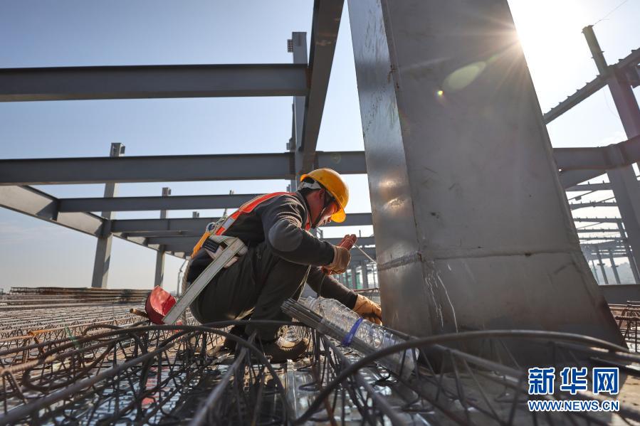 1月14日,工人在海口美兰临空经济区航空发动机维修基地项目现场作业。
