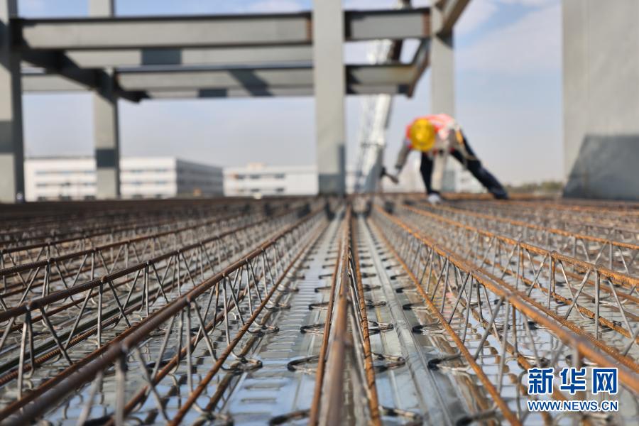 1月14日,工人在海口美兰临空经济区航空发动机维修基地项目现场作业。