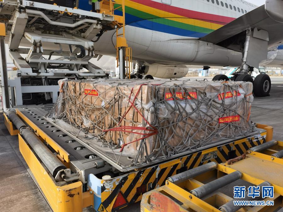 这是1月12日在拉萨贡嘎国际机场拍摄的西藏阿里向河北捐赠的抗疫物资。新华社发(王佳豪 摄)
