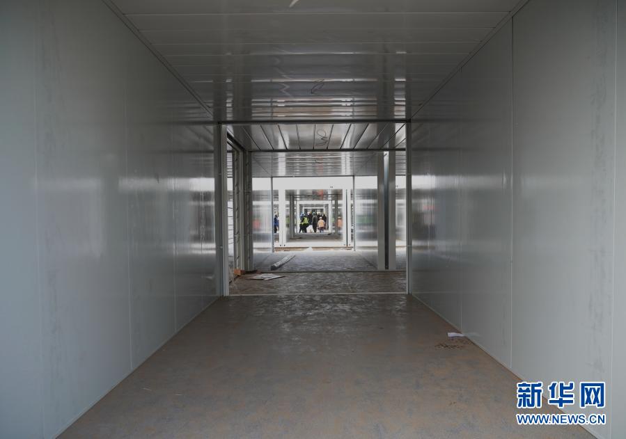 1月15日,工人在石家庄黄庄公寓隔离场所项目工地安装集成房屋。