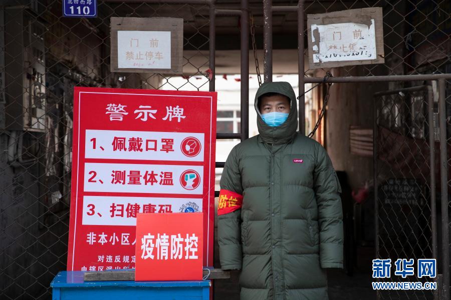 1月16日,在绥化市尚志小学家属楼小区卡点,工作人员在执勤。新华社发(张涛摄)