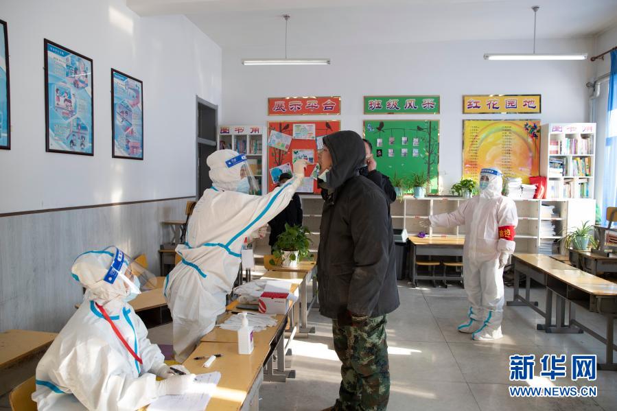 1月16日,工作人员在绥化市靖宇小学核酸检测点采样。新华社发(张涛摄)