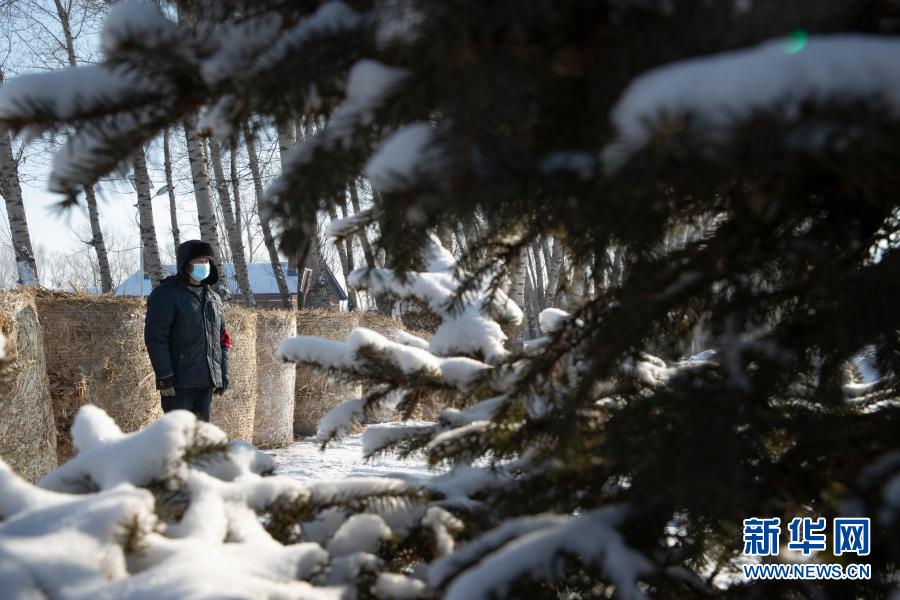 1月15日,在望奎县后三乡厢白七村,巡逻员在村头值班。新华社发(张涛摄)