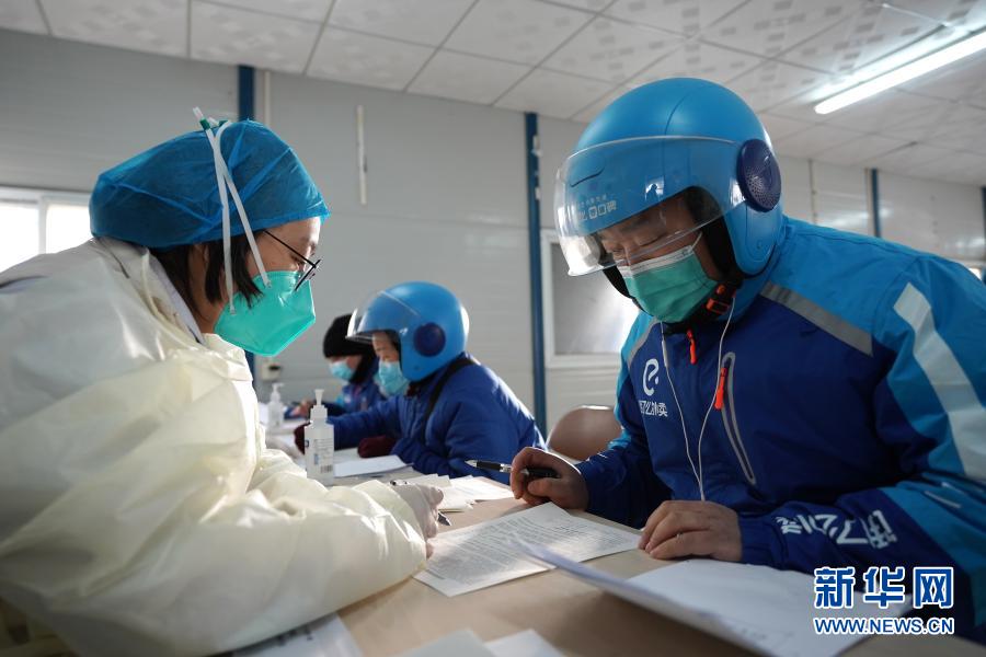 今年35岁的张卫鹏是在北京市工作的一名外卖骑手,当天一早他从北京市北四环的住处出发,来到位于北京市东城区天坛街道祈谷社区的新冠疫苗临时接种点接种新冠疫苗,和他一起接种的还有几十名同样准备留在北京过春节的骑手同事。