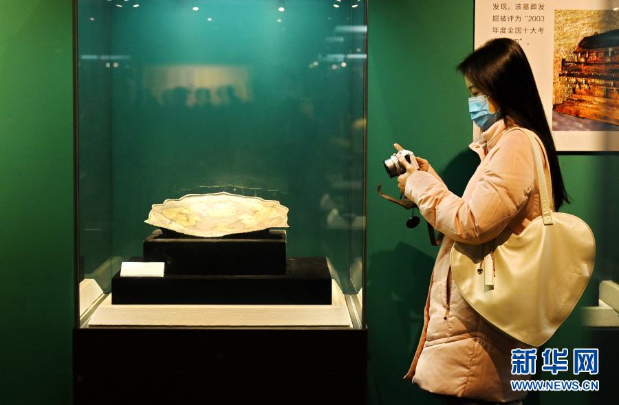 1月17日,参观者在拍摄展出的金花银枕。新华社记者 林善传 摄