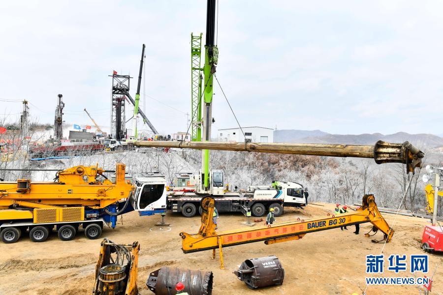 1月20日,救援人员在吊装10号钻孔钻杆。